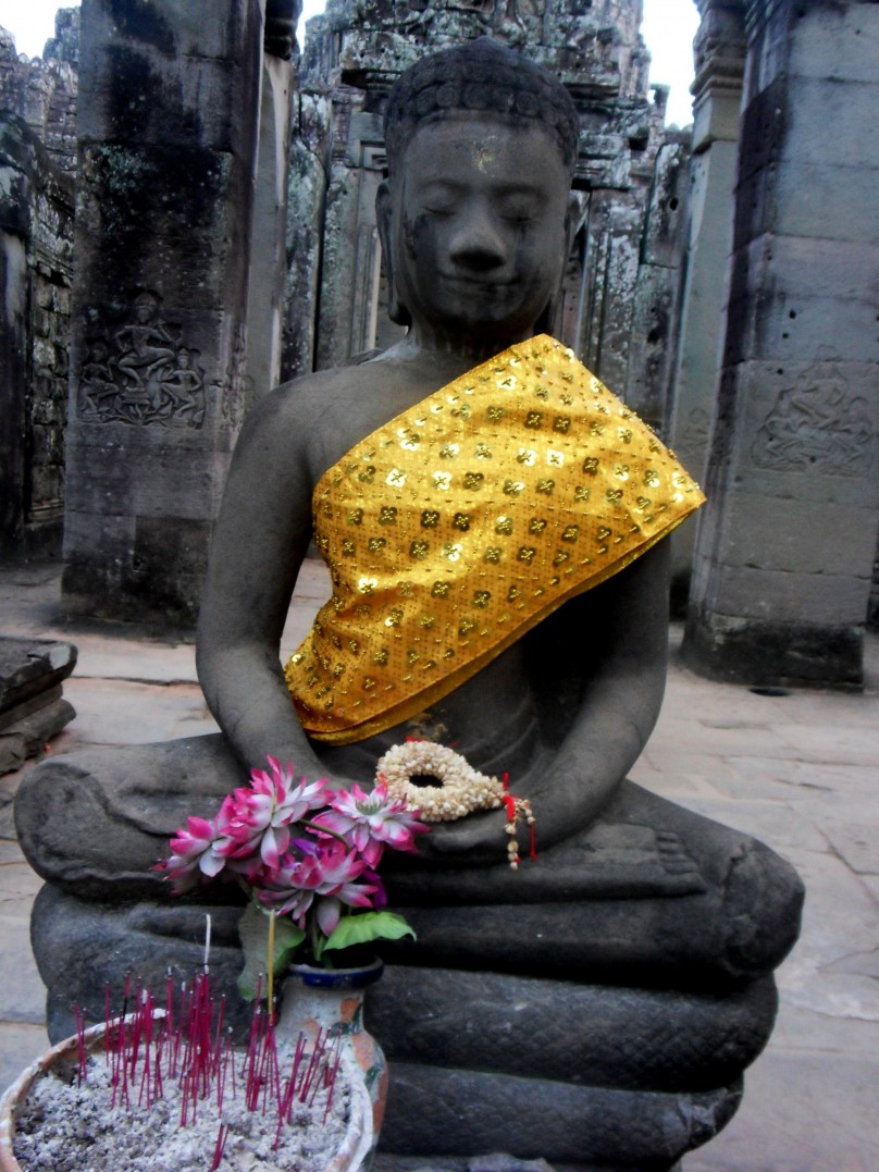 Es besteht aus gewaltigen Skulptur-Türmen, die auf allen vier Seiten mit dem Antlitz Buddhas geschmückt sind. Man vermutet, dass die Gesichter gleichzeitig den Herrscher Jayavaram VII. darstellen. Die Könige des Khmer-Reiches betrachteten sich als irdische Inkarnation der Götter. Es ist erstaunlich, welch lebendige Ausdruckskraft in diesen aus massiven Steinblöcken zusammengefügten Gesichtern liegt. Mir schien die Mimik der Gesichter tiefe Güte, Anmut und Weisheit auszustrahlen.