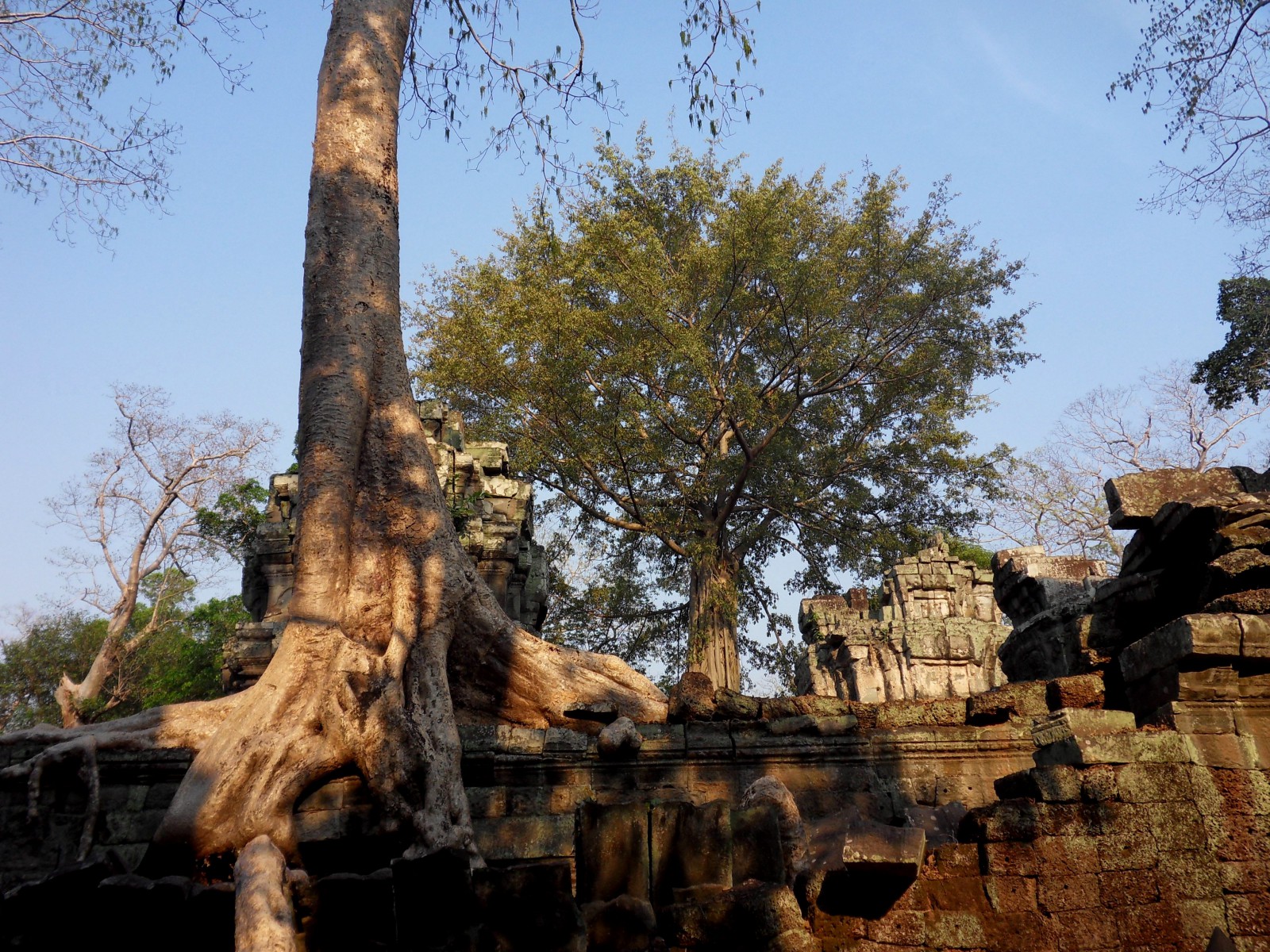 Meine Lieblingstempel waren Ta Prohm und Preah Khan. Im Gegensatz zu den meisten anderen Tempeln lässt man hier zu, dass Baumriesen auf den Mauern und Tempeln wachsen. Das erweckt den Eindruck, als erobere sich der Dschungel die Tempel zurück, und vermittelt ein Gefühl davon, wie Angkor gewirkt haben muss, als es nach seinem Niedergang vollständig vom Dschungel überwuchert war. Gerade das grüne Labyrinth des Dschungels trägt erheblich zur mystischen Atmosphäre bei, einer Aura vergangener Zeiten und einer vergangenen Welt. Die Natur zeigt deutlich, wie schnell sie sich nach dem Niedergang einer Hochkultur zurückholt, was ihr der Mensch in Jahrhunderten abgerungen hat.
