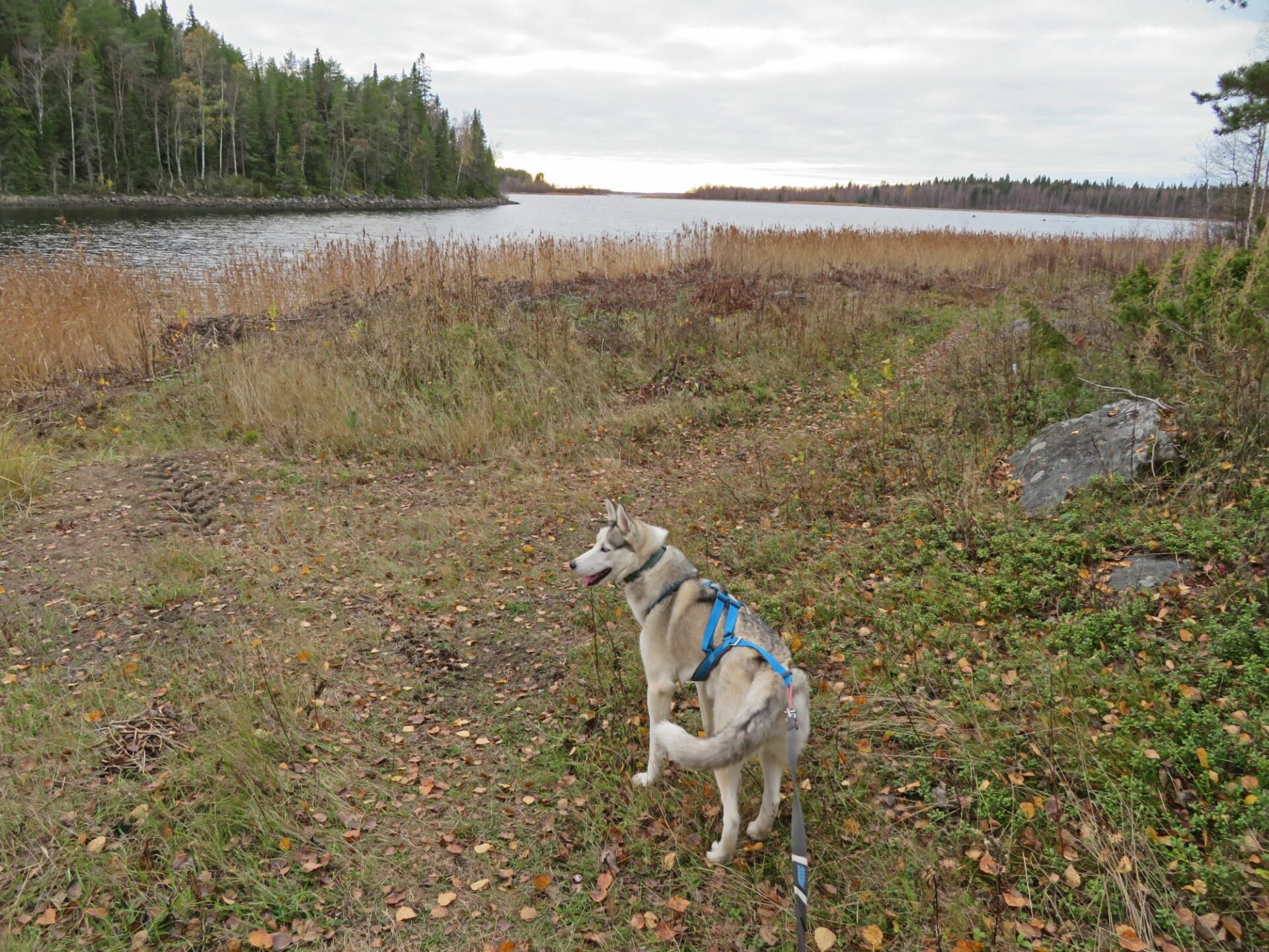 Doch Eric und Susanne sind nicht alleine nach Hindersön gezogen, sondern mit ihren elf Huskies, die mich auf der Insel mit freudigem Bellen und Heulen begrüßen. „Wir sind die wohl einzige Husky-Farm auf einer Insel in Schweden“, berichtet Susanne stolz, und bei einem gemeinsamen Spaziergang davon, wie sie als Landmädchen eigentlich immer in der Stadt leben wollte, nie so weit draußen in der Natur. Bis sie mit Eric zusammenkam. Bald kenne ich die außergewöhnliche Liebesgeschichte der beiden und die nicht minder spannende Story, wie sie zu so vielen Huskys gekommen sind. Jede von uns hat einen der gerade mal sieben Monate alten Welpen um die Hüfte geschnallt und wird von ihm durch den Wald gezerrt. Immer wieder erlebe ich Nah-Crash-Erfahrungen mit diversen Bäumen, andere Male muss ich wenige Meter vor der kalten Ostsee mit den Hacken tief im Sand auf die Bremse gehen, um kein Herbst-Bad zusammen mit dem Husky zu nehmen. Kostenloses Beine-Po-Training Hindersön-Style. Am Ende bin ich genauso geschafft wie die Tiere.