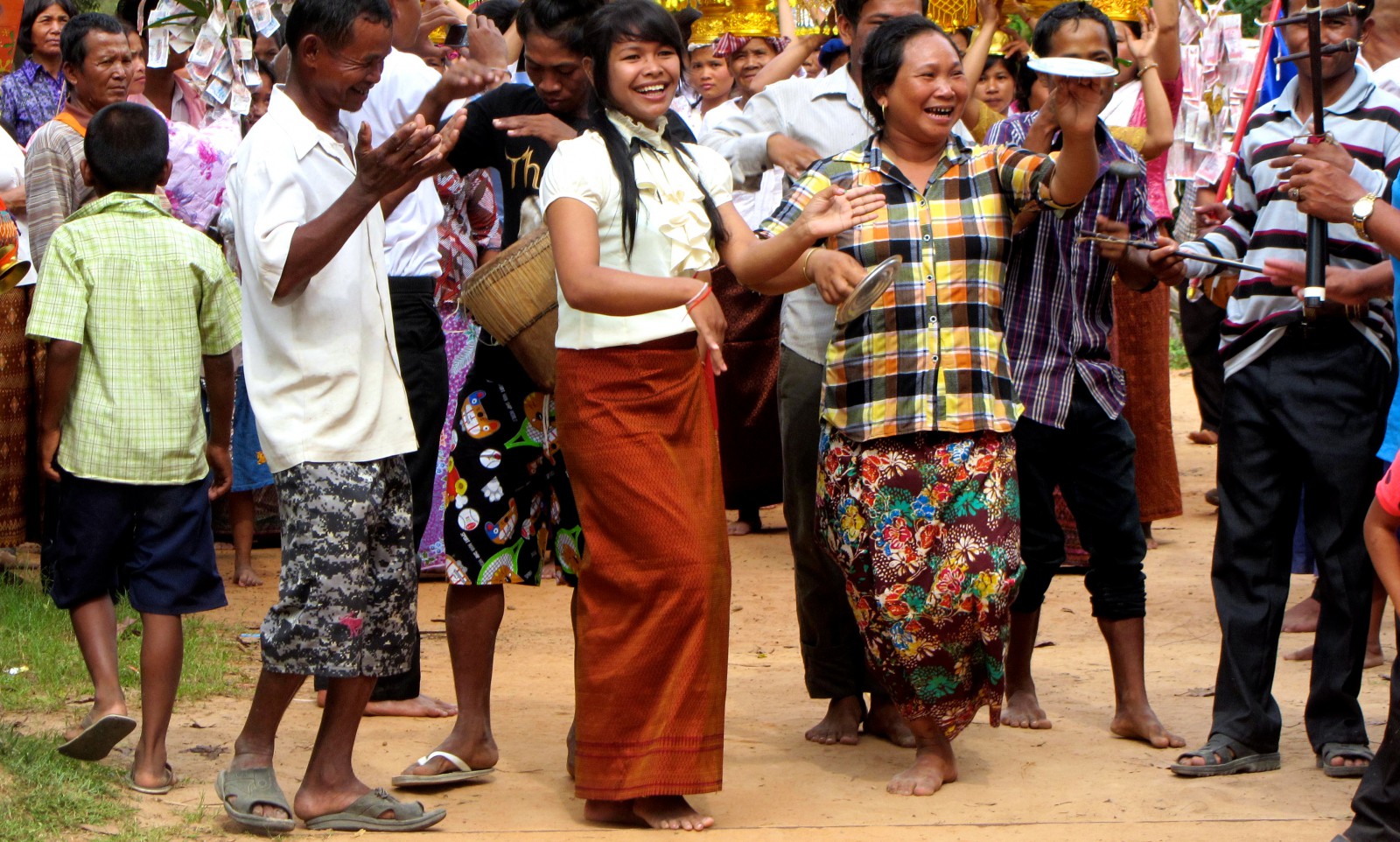 Eine Pagode auf dem Land, irgendwo zwischen Reisfeldern und Dschungel. In der Gegend von Banteay Srei, ungefähr fünfzig Kilometer nördlich von Angkor Wat feiern die Bauern ein großes Fest. Auch wenn man nicht so ganz versteht, worum es geht: Tanz, Musik und Geschenke gehören auch hier dazu.