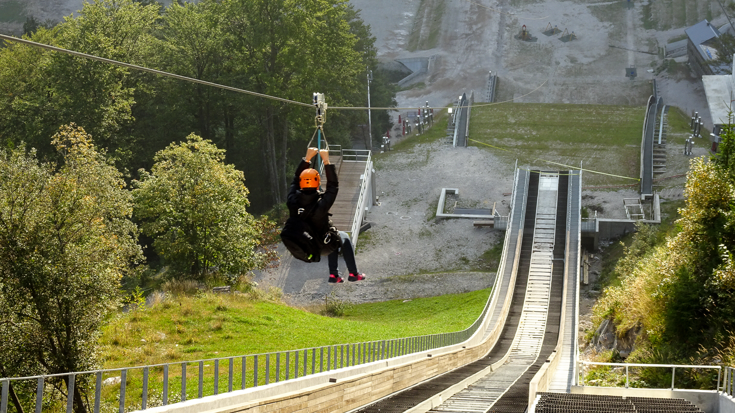 Im Besucherzentrum von Planica, dem Ort der berühmten Skisprung- und Skiflugschanzen, probiere ich den Skiflugsimulator aus. Mit viel Balance und richtigem Timing schaffe ich einen guten Absprung, komme aber in der Luft etwas aus der Balance und kann mich nur mit gewaltigen Armerudern auf dem wackligen Simulator halten. Die Landung gelingt mir nochmal hervorragend. Mein erster Sprung und gleich 174 Meter. Ich bin dennoch froh, den Boden nicht wirklich verlassen zu haben. Als ich kurze Zeit später auf der Schanze stehe, ist der Blick ins Tal um eine Dimension reicher und mit dem Bergpanorama ein »Wow« wert. Zu meinen Füßen liegt das Tor zum Triglav Nationalpark. Zu gerne würde ich meine Wanderschuhe anziehen und einfach in den Bergen verschwinden, aber das Seil der Zip-Line hält mich zurück. An der Spitze der Skiflugschanze haben sich ein paar wagemutige Leute zu schaffen gemacht und ein 566 Meter langes Stahlseil montiert: einmal direkt über die Schanze bis hinunter ins Tal. Ich probiere mich im etwas anderen Ski-Fliegen und schaffe statt 174 Meter die 566 Meter. 40 Sekunden Adrenalin pur – nur fliegen ist schöner!