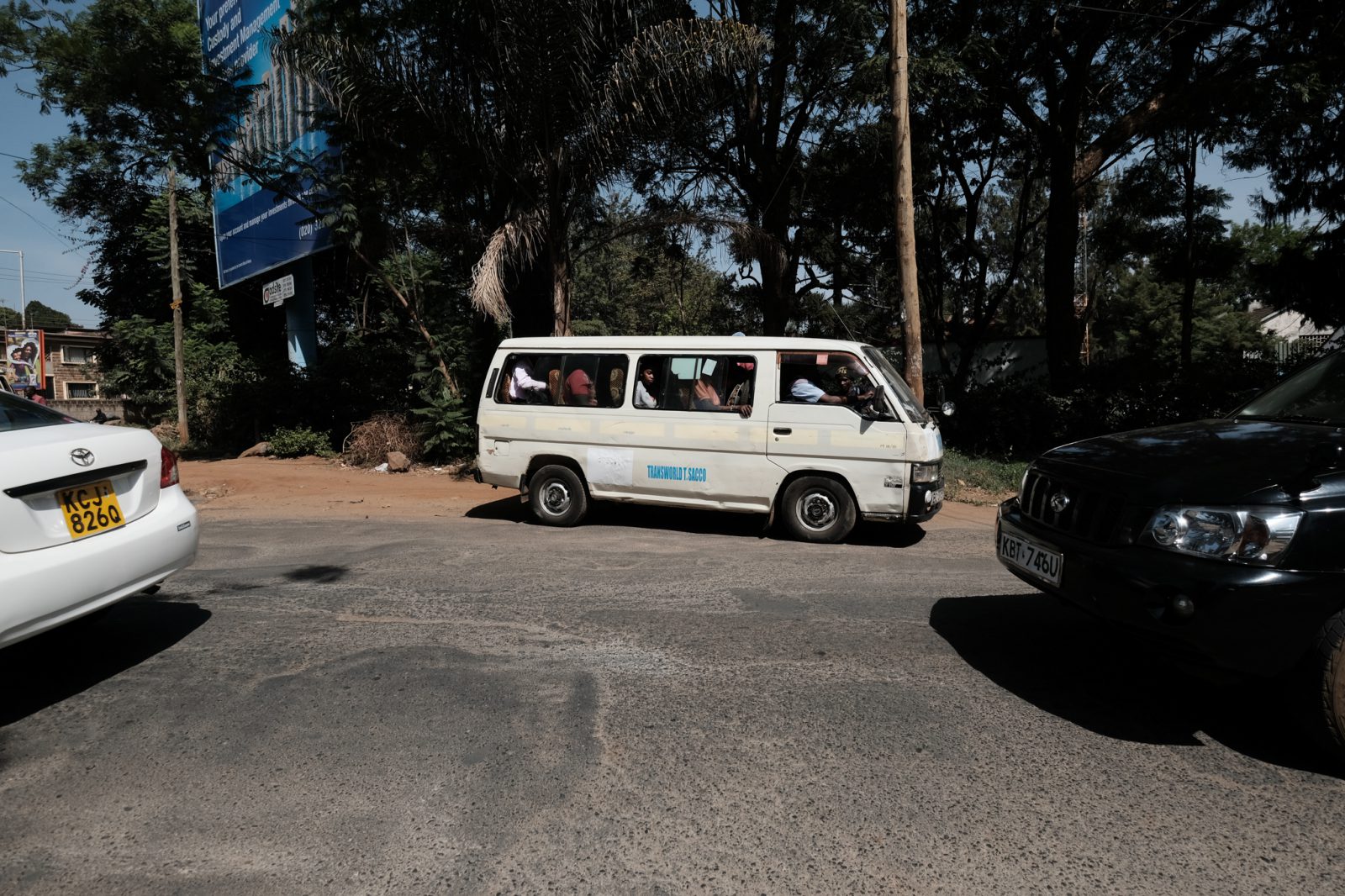 Ach, diese kleinen Transportbusse. Irgendwelche Toyota Kleinbusse. Fahrender Schrott. Man muss damit fahren. Besser lässt sich Kenya nicht erklären. Es gibt einen Fahrer, einen Conductor und einen, der an Haltestellen den Motor mit Gasschüben am Leben lässt. In unserem Fall ist Letzterer ziemlich besoffen. Aber der Fahrer ist eh verschwunden. Wir sind eigentlich schon voll. 14 Leute sind bereits im Fahrzeug. Unter 20 Personen wird hier nicht gestartet. Die Dinger werden bis zum Rand vollgepackt. Wenn der Kassierer nicht mit reinpasst, hängt er sich einfach draußen dran. Zum Glück sind die Omis hier schön weich gepolstert an der Hüfte, da tun mir nur die Schienbeine ein bisschen weh. Die stecken im Vordersitz. Beim Blick nach unten sehe ich den Straßenbelag. Blick nach hinten 20 schwitzende Fahrgäste zu einem Menschenberg zusammengequetscht. Der Fahrer kommt. Der Conductor haut zweimal mit der Münze gegen die Scheibe. Los geht es! Wir stocken zwischendurch mal auf 23 Leute auf. Schlaglöcher werden über die gesamte Straßenbreite umfahren. An jeder Haltestelle redet das ganz Dorf auf uns ein. Jeder gibt dir die Hand. Die meisten sind betrunken, machen Witze oder versuchen sich im Smalltalk. Hektik. Chaos. Schmerzende Schienbeine. Einer sagt, dass er ab der Hüfte abwärts seine Beine nicht mehr spürt. Egal. Umfallen kann man hier eh nicht. Nach einer gefühlten Unendlichkeit kommen wir wieder in Kikuyu an. Ein Umsteigeplatz. Vom kleinen Bus in den großen Bus. Noch mehr Hektik. Noch mehr Busse. Noch mehr Chaos. Aber wir kommen an. Wir kommen mal wieder irgendwo an. Lebend.