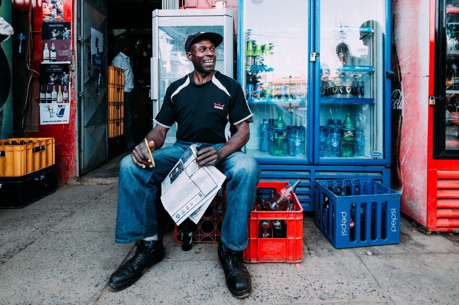 Da halte ich mich doch an meinem Freund Moses fest. Er hat eine kleine Tochter und sieht sie fast nur jeden Montag, da er 12 Stunden am Tag unsere Hoteleinfahrt bewacht. Ihm genügt das. „Ich habe einen Job. Werde regelmäßig bezahlt. Mein Kind ist gesund und meine Frau schmeißt den Haushalt. Montags machen wir was Schönes zusammen! Es ist ein gutes Leben. Alle sind gesund“, sagt er zu mir. Er lächelt. Ich drucke ihm das Portrait aus, dass ich von ihm gemacht habe. Er freut sich und schaut es sich sehr lang an. Er ist stolz. Er zeigt auf das Hotel und sagt: „Das ist mein Hotel. Ich beschütze es. Genau wie auf dem Bild!“ Ich nicke. Wir klatschen ab. Ein ganz normaler Tag in Nairobi eben.