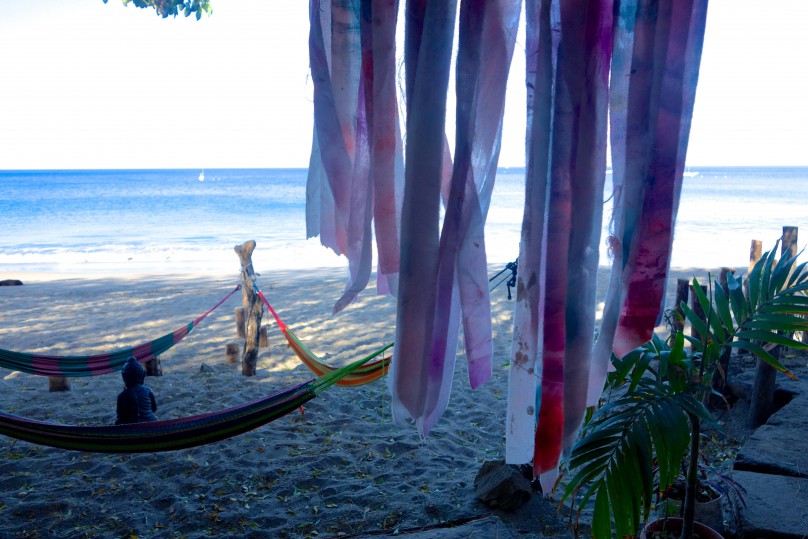 Später gehst du in die Bar von deinem Hostel. Weil sie direkt am Meer ist, weil sie supergemütliche Sessel hat und weil sie die einzige Bar in diesem Örtchen ist. Du gehst rein und kennst niemanden. Gerade jetzt vermisst du doch den Strandort, den du heute Morgen verlassen hast. Dort weißt du genau, wer gerade an der Bar sitzt. Eigentlich hättest du ja auch noch bleiben können. Naja, jetzt bist du hier und setzt dich halt an die Bar. Beim Nica libre lernst du ein paar andere Reisende und ein paar Locals kennen. Locals und Nichtlocals mischen sich hier ganz wunderbar. Du erfährst, dass die Pulperia, in der du warst, auch die einzige hier ist. Und dass es ein Stückchen weiter die Straße runter noch besseres Essen gibt. Und dass Mario das große Wellenbild an der Wand gezeichnet hat und deswegen Nica libre auf’s Haus schlürft. Viel zu früh bist du viel zu müde von der Reise und von den vielen neuen Eindrücken, dass du viel zu früh ins Bett gehst. Dass es hier keine Uhren gibt, fandest du schon von Anfang an gut.