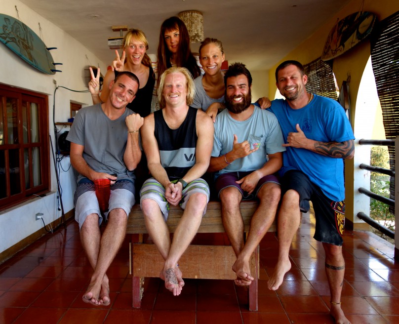Da ist für jeden eine dabei. Manche kommen groß wie ganze Wände angerollt. Über die freuen sich besonders Jared und Sean. Cousin Jared ist eigentlich Surflehrer etwas weiter im Süden Nicaraguas, aber besucht gerade Onkel Greg. Er wollte eigentlich nur für ein paar Tage kommen, jetzt ist er schon seit ein paar Wochen da und surft jeden Tag mit Onkel Greg. Zwischen den Wandwellen kommt er immer wieder mit seinem Board und einigen hilfreichen Tipps zu uns gepaddelt. Wenn wir dank ihm dann die Welle noch schöner nehmen, hat er noch mehr Spaß. Cousin Sean verbringt einfach alle Zeit, die er kann in Nicaragua zum Surfen. Wenn er zwischendurch mal nach Hause in die USA fährt, kommt er immer wieder schnell zurück und fragt sich, warum er diesen Ort eigentlich verlassen hatte. Das Surfen macht ihm einfach zu viel Spaß – und das schon sehr lange. 1996 hatte er ein Bild von sich im Surfers Magazine. Eine ganze Doppelseite. Hochglanz. Das ist sowas wie ein Ritterschlag und Heiligenschein gleichzeitig für einen Surfer.